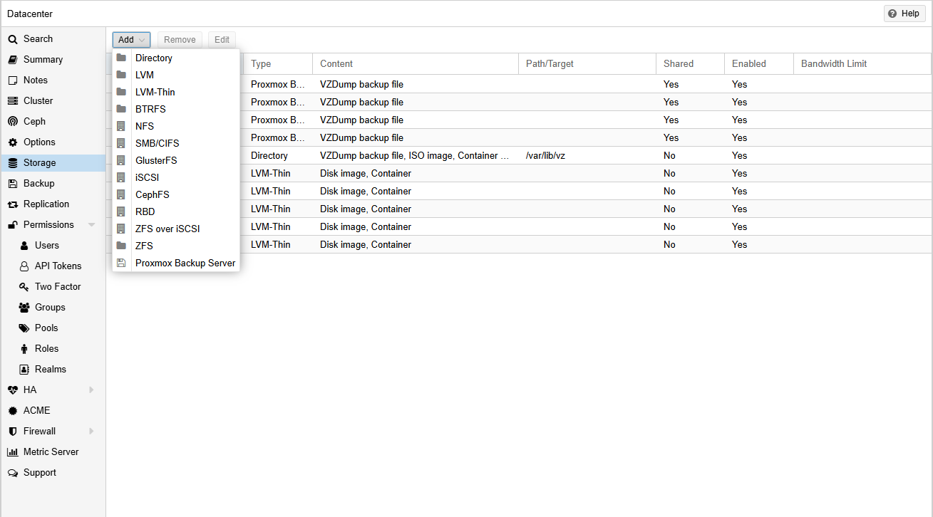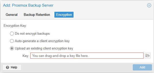 To add the server, go ahead and add a Proxmox Backup Server under the Datacenter > Storage tab.
